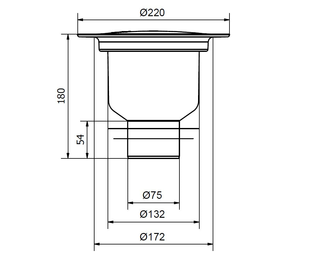 Brage 75, Ø 75 mm-es, rövid függőleges kifolyócsonkkal készülő padlóösszefolyó