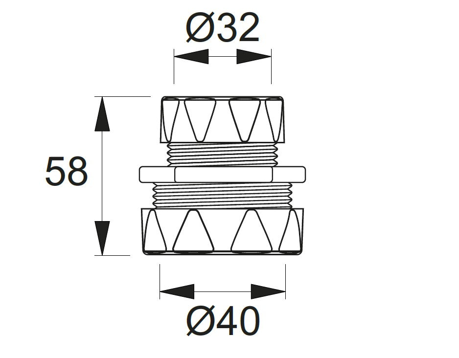 - Socket szorítógyűrűs egyenes, Ø 32 mm-es és Ø 40 mm-es átmeneti csatlakozóidom
